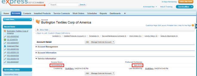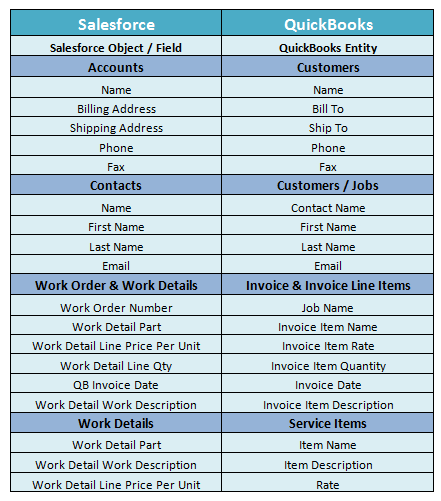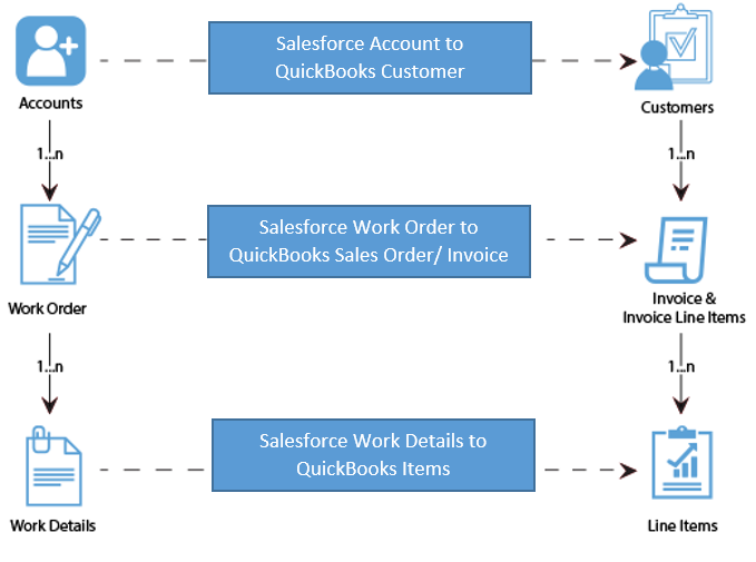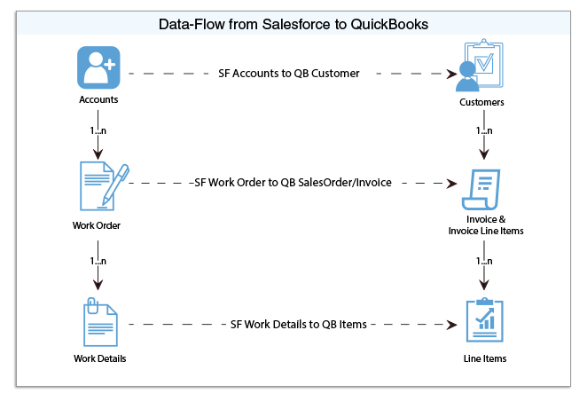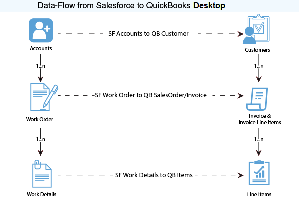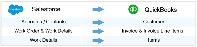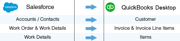 DBSync for ServiceMax Salesforce & QuickBooks Desktop is an easy to use application. It integrates ServiceMax Salesforce Accounts, Contacts, Work Orders & Work Details with Customers, Jobs, Invoice & Line Items of QuickBooks Desktop.