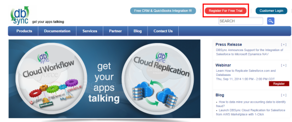 - Go to www.mydbsync.com and register for a Free Trial. Ensure that Source & Target Adapters are Salesforce and QuickBooks Online respectively. Choose the standard package during registration.
