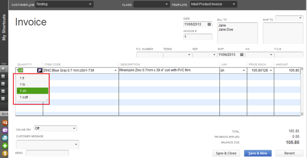 The rate or amount of the LineItem should be precise based on the UNIT used and the quantity used. The calculation of this needs to happen on the Salesforce side at the Opportunity Line Item level. It will be based on the PRODUCT selected and UNIT used before, DBSync can parse/push this data into QuickBooks without the transaction erring out.