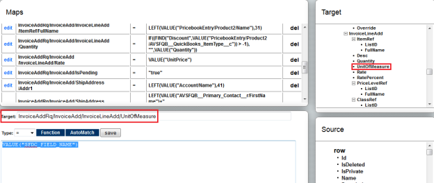 Below is a table lists mappings / data required from Salesforce for successful integration of a QuickBooksInvoice transaction with a Unit of Measure.