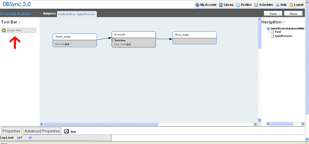 3. Upon opening the process flow map, click on the “Create State” icon on the left side of the application under the “Toolbar” menu as indicated by the red arrow in screen shot (below):