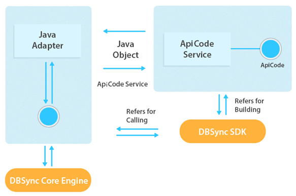 Java Adapter : Key Component in the ApiCode framework. It interacts with ApiCode and converts the Java In/Out objects into XML for integration with DBSync Core Engine.