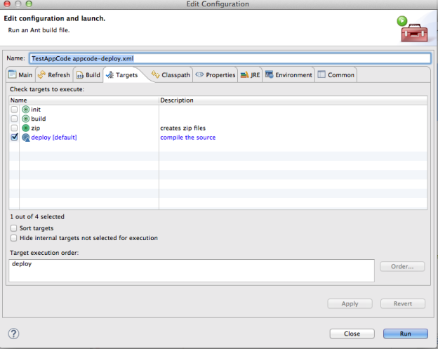5. Now we need to run the ant script for appcode-deploy.xmlwith target. As deploy, we will see the output as follows: