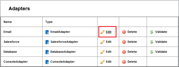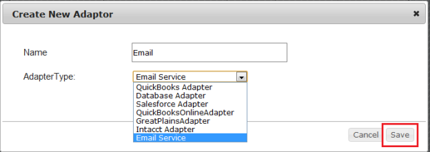 - Click on Create New Connector. Enter the connector name as Email and select the connector type as Email Service Adapter. Click Save.