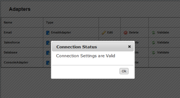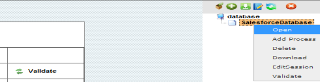 - You will see the existing connectors Salesforce and Database. Make sure these connectors are also validated.