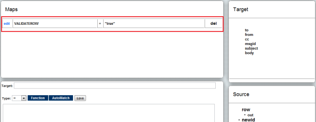 - Click on Map in this newly created Rule. You will see the target fields on the left section of the Mapping screen.