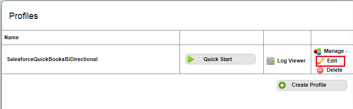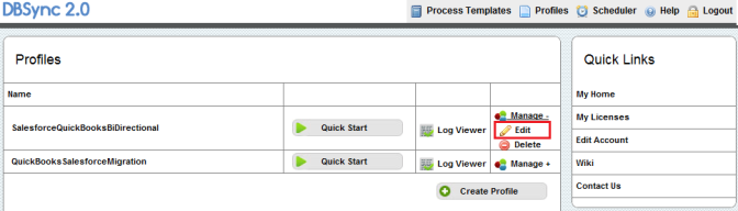 - Click on Manage > Edit for the Profile in the DBSync console.