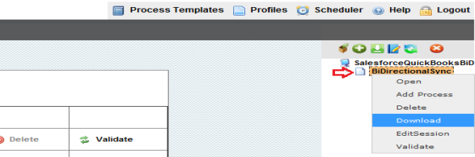 - In the Process Builder console, on your process name, Right Click to select Download. In this tutorial, the process name is "BiDirectionalSync". As shown in the screenshot below: