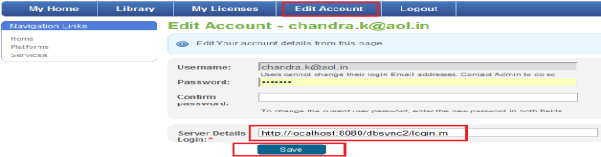 - Click on Company to see all the usernames. Click on Edit under DBSync Org Properties. Then, click on Edit and enter the following URL - "http://localhost:8080/dbsync2/login.m".
