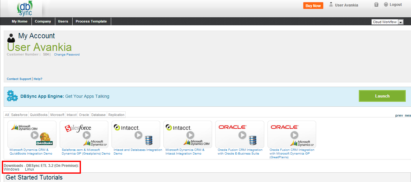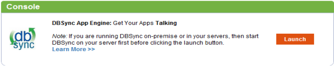 - Go to www.mydbsync.com and click on Customer Login. Enter your Username and Password. Then, click on Sign in. Next, click on Launch, to access DBSync Integration Console.