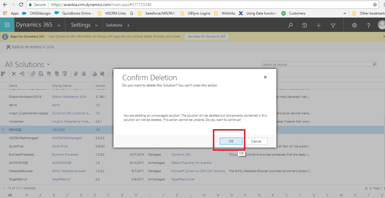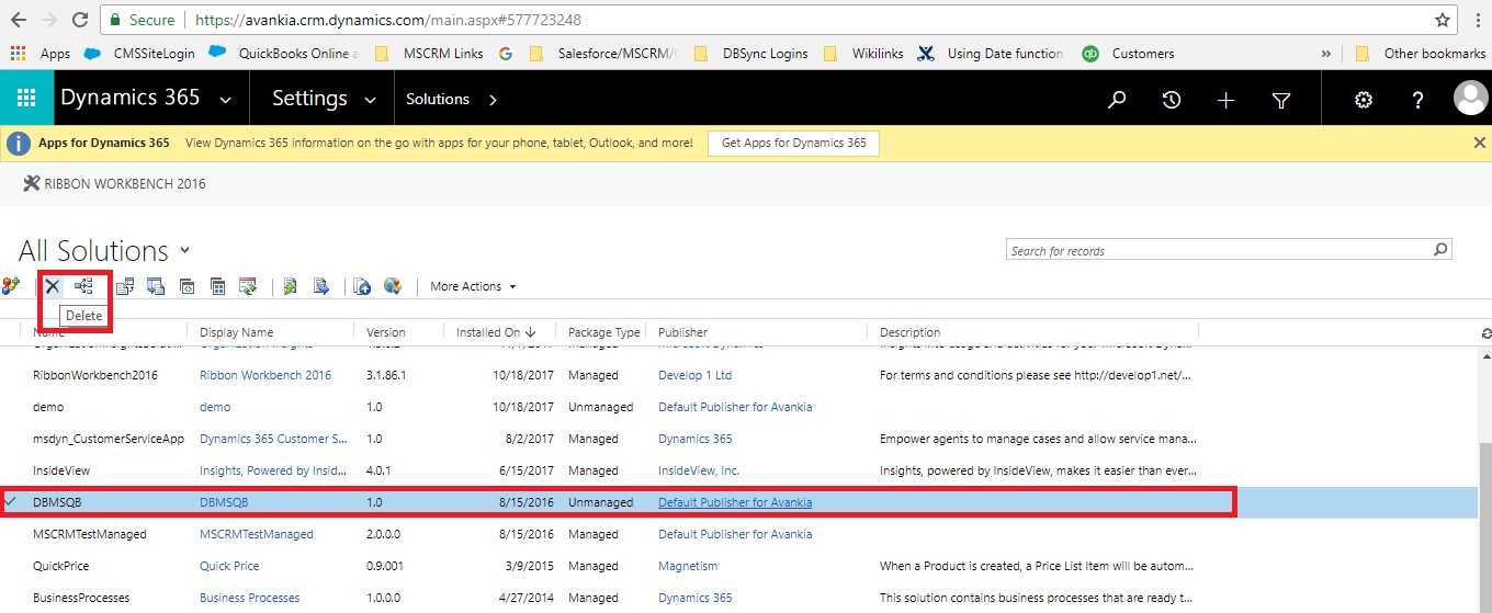 Use following procedures to uninstall the DBSync package from the Microsoft Dynamics CRM instance.