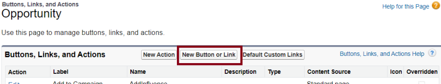 Further, we will navigate to Buttons, Links, and Actions under opportunity object and create a new Button.