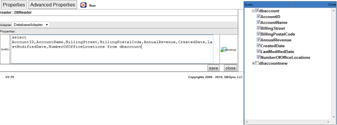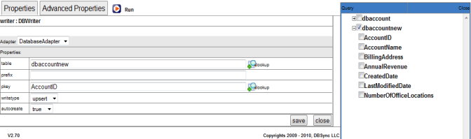 - In this example, Target Connector is database, Operation is Insert, target object is dbaccountnew.