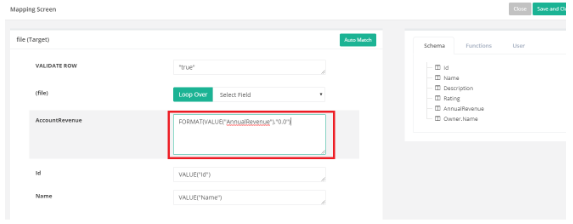 The best practice is to have this converted to an exact number which is the same as in Salesforce UI and send it to the target system. This can be done using the DBsync standard function FORMAT. This is the mapping for the target field - FORMAT(VALUE("AnnualRevenue"), "0.0")