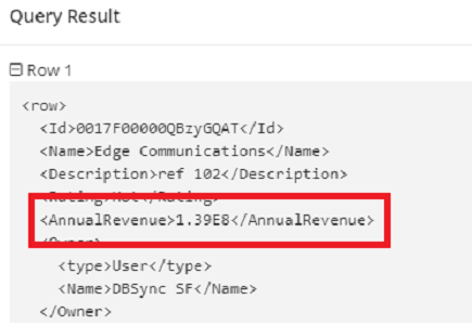 So, when the same is been previewed via DBSync Advanced Query Builder. The value would show as “1.39E8”, which is nothing but an exponential value and it is not issued with DBSync or the UI but it is how salesforce API gives the response on external applications. This value may or may not be accepted by the target system.