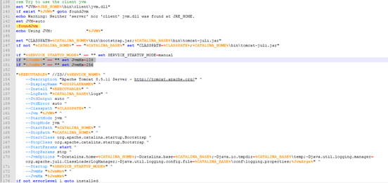 2. Also, edit service.bat and change the heap size as shown below - to, certain value based on the RAM available.