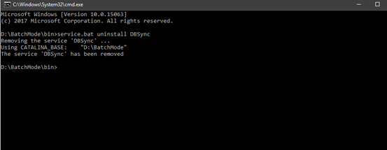 To un-register the service, execute the following command by opening a command prompt service.bat, as administrator and, uninstall DBSync.
