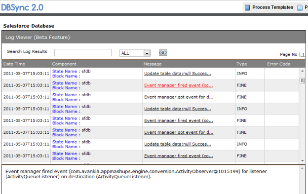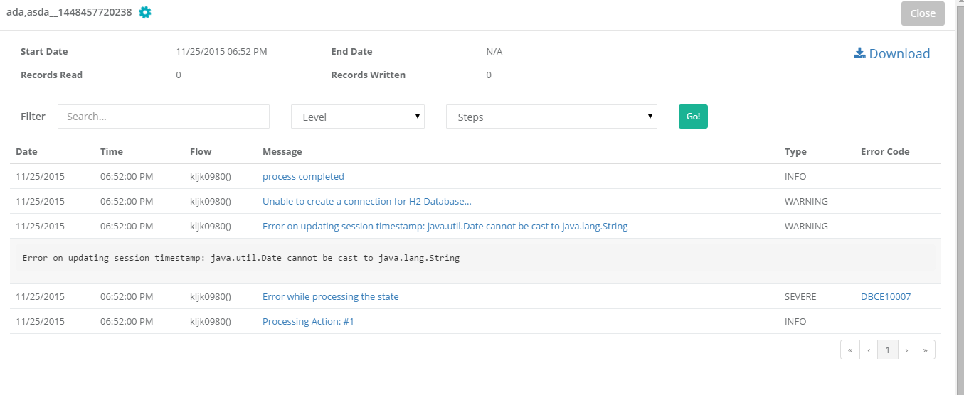 - The log listing page has filter criteria. The page can be filtered based on Process Name, Date Range, etc.