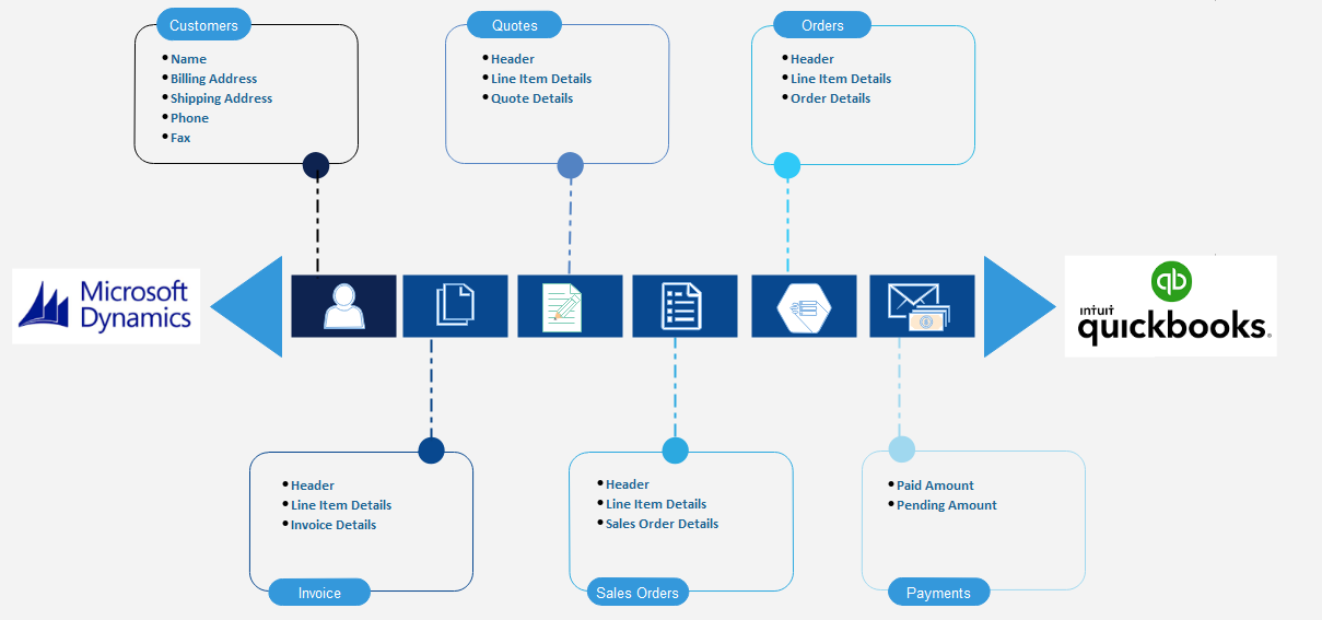 - Microsoft CRM Invoice to QuickBooks Invoice: This workflow will be unidirectional. It integrates data from Microsoft CRM to QuickBooks. Microsoft CRM Invoice and Invoice Line items will be integrated as Invoice and Invoice Line Items in QuickBooks.