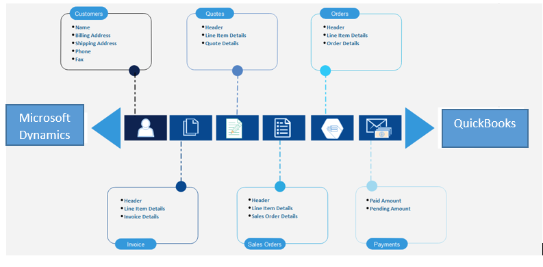 - QuickBooks Payments to Microsoft CRM Invoice: This workflow will be unidirectional. It integrates data from QuickBooks to Microsoft CRM. QuickBooks Payments applied against the Invoice will be integrated as Microsoft CRM Invoices/ Invoice Payments.