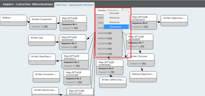 - Double-click on the process flow, "BiDirectionalSync". Then, open the "InvoiceToInvoice" state. Open the mapping "Sequence No 1" and add the same mapping as shown in the example above.