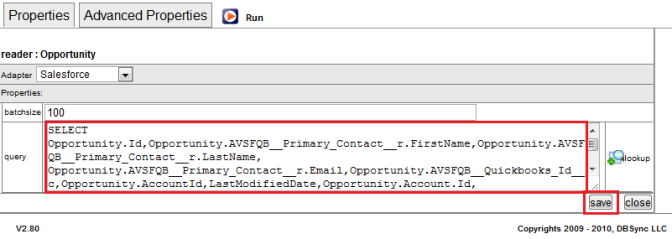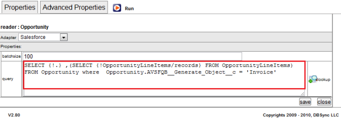- Open workflow OpportunityToInvoice. Replace the reader query in the Advanced Query Builder with the following query and then, click on the Save & Close button.