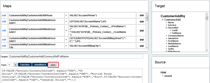 CustomerAddRq/CustomerAdd/CurrencyRef/FullName = IF(VALUE("Account/CurrencyIsoCode").equals("USD"),"US Dollar",IF(VALUE("Account/CurrencyIsoCode").equals("GBP"),"British Pound Sterling",IF(VALUE("Account/CurrencyIsoCode").equals("EUR"),"Euro",IF(VALUE("Account/CurrencyIsoCode").equals("CAD"),"Canadian Dollar",""))))
