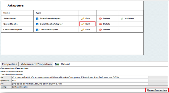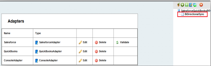 - Ensure that the Salesforce and QuickBooks connectors are validated. You should have process template SalesforceQuickBooksBiDirectional.