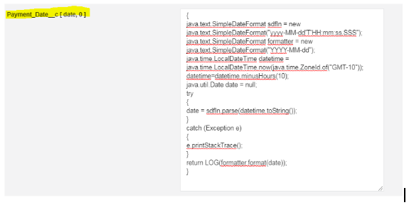 Go to receivable mappings, then on Payment Date (Payment_Date__c) which is a custom Field on Salesforce we have to update the below code.