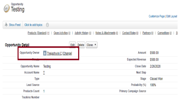 The name of the opportunity owner from salesforce to transfer over to the Quickbooks. The “alias” name of the opportunity owner is transferred over to the Quickbooks “rep” field of Invoice.