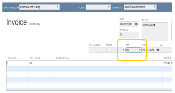 And Hence, In the above image, we can find the alias name mapped to the Rep field under Invoice in Quickbooks.