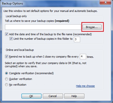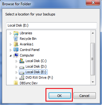 - Click on Browse Button. Select your Backup location. Then, click OK.