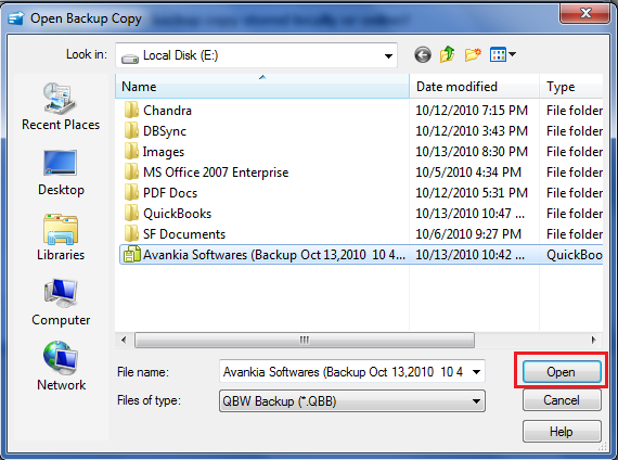 - Open the QuickBooks file you want to Backup navigate to> Open Previous Company File > File Name in QuickBooks.