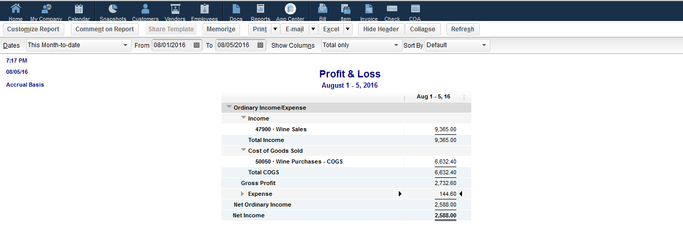- Since the Profit&Loss report is not exposed directly by the QuickBooks API, we use Custom Detail Report API.