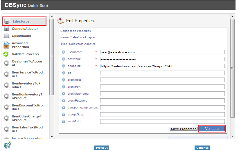 - Configure DBSync with QuickBooks Web connector. For a detailed step by step configuration process click on Configuring DBSync with QuickBooks Web Connector link.