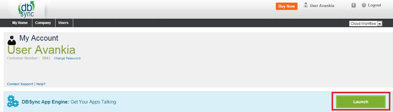 - Click on Launch. DBSync Projects page will display in the next tab.