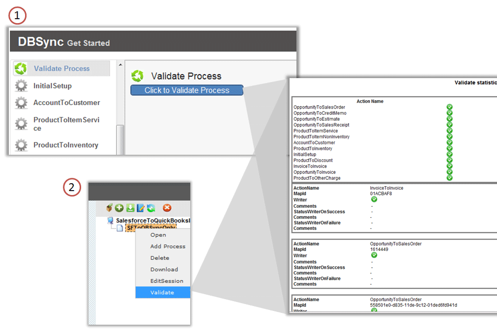 This validation process checks each and every action of the sync and finds out all valid and invalid entries based on the adapter configurations. Once the validation is completed, the user is presented with a tabular report for all the valid and invalid actions.