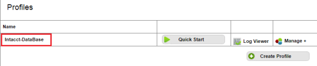 - Click on Projects. Then, click on the project Sage Intacct-Database. Here, you will see the new process Sage IntacctToDatabase. Click on the newly created process Sage IntacctToDatabase.