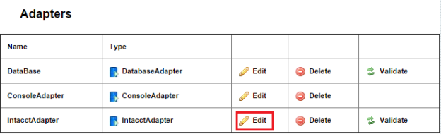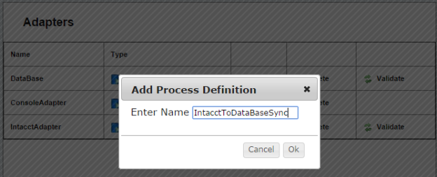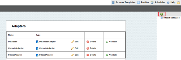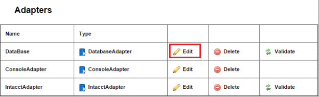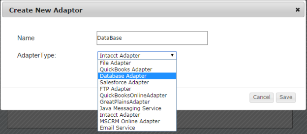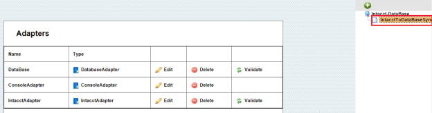 - Sage Intacct Connector is created and the connection is validated. Next, Database adapter needs to be created.