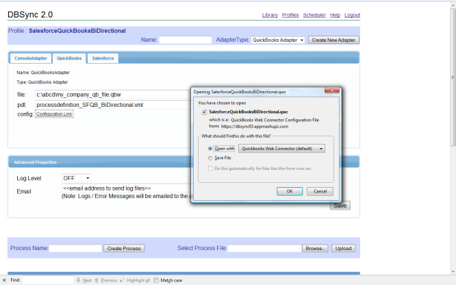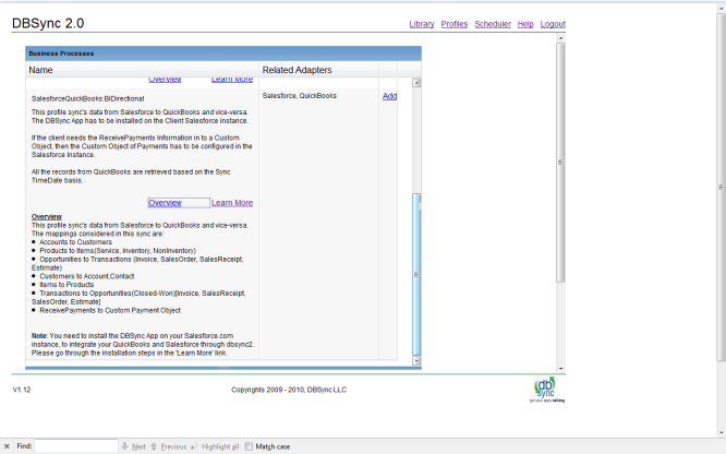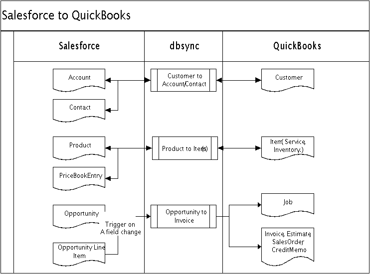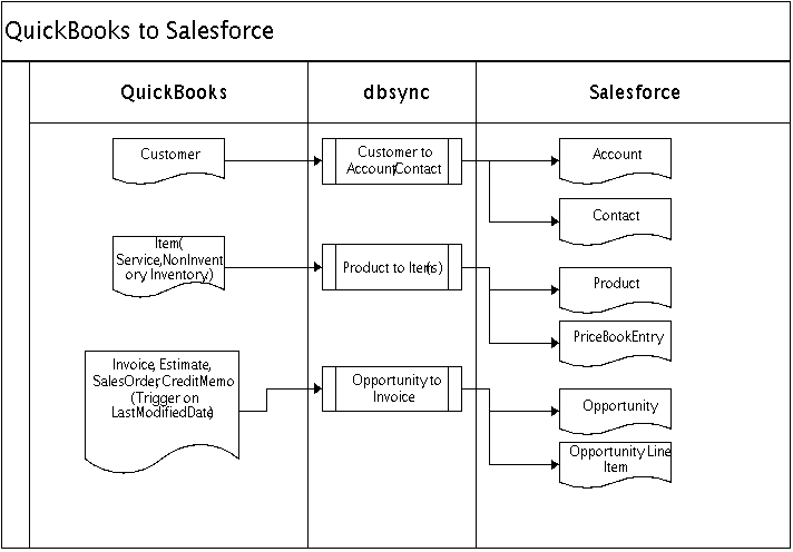 There are multiple templates, available in our Solutions library, to integrate Salesforce and QuickBooks. Login to your DBSync Account. Click on Process Template tab to find a complete list of Solutions library. Click on view more - on each process template - to find integration details.