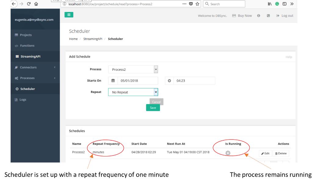 As we mentioned earlier, we want to create a process that runs as continuously as possible. However, DBSync cannot detect if the process has stopped for any reason; and thus, it cannot restart it automatically.