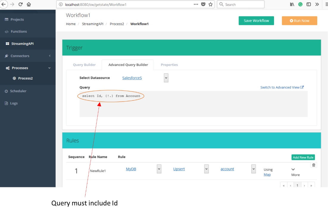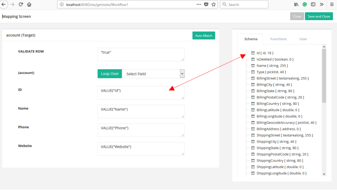When we create a new rule, we must make sure to map the ID from Salesforce to the MySQL table’s ID.