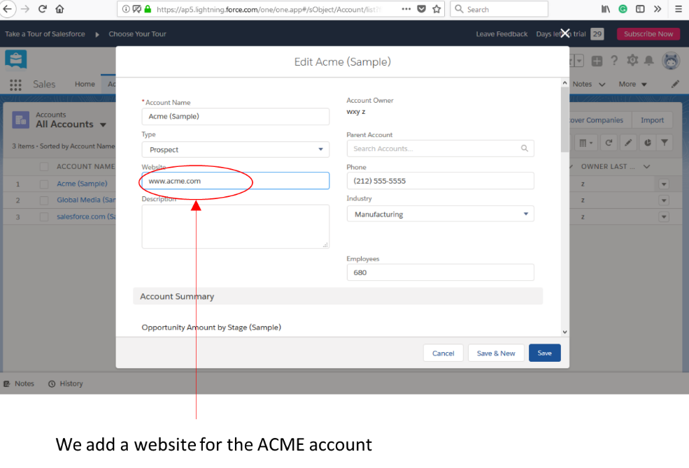 In this example we will connect Salesforce table Accounts to a MySQL table Accounts. The steps are: