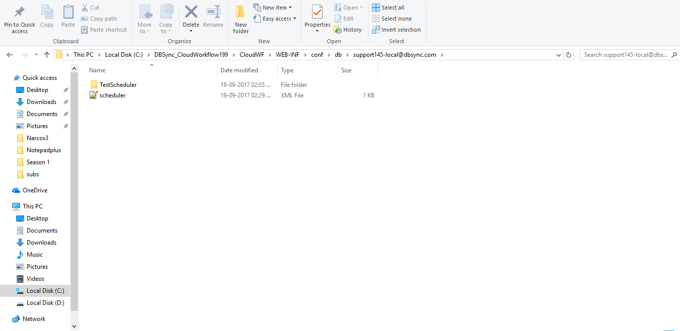 Step 3 : The folder path would be something like "C:\DBSync_CloudWorkflow\CloudWF\WEB-INF\conf\db\User Name".