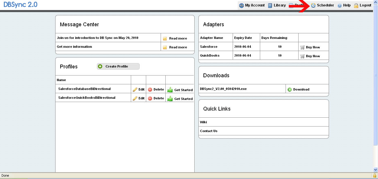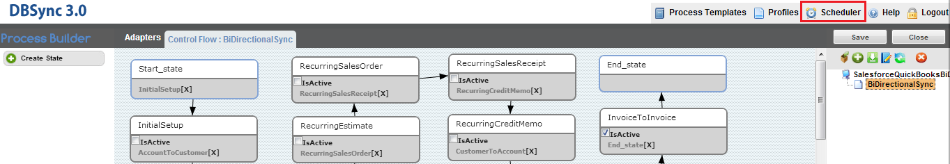 The scheduler is not supported for QuickBooks Desktop Integration as QuickBooks WebConnector is used to schedule data transfers.