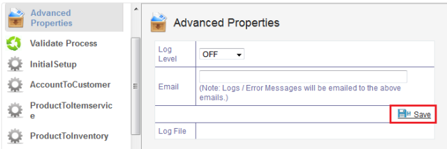 - From the "Properties" section, the user has an option to regulate the log levels as shown in the screen shot below: