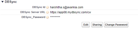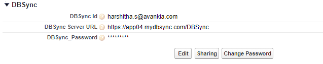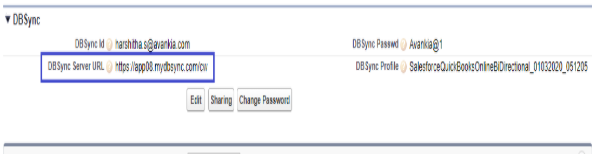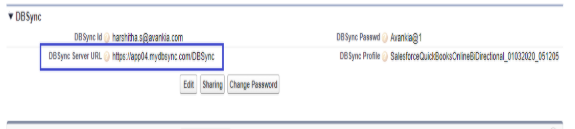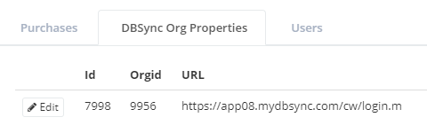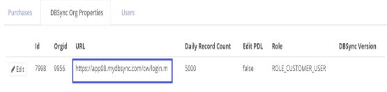 4) Now click edit and then hit on DBSync Org Properties to check for the server URL.
