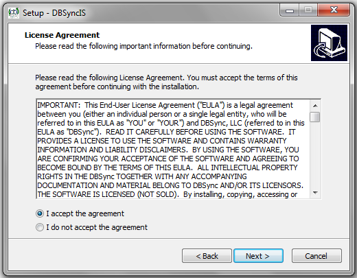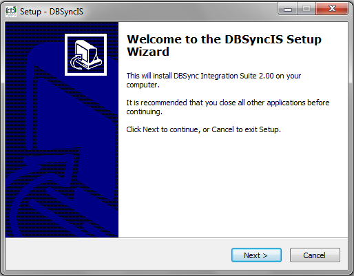 - Click Next on the "Welcome to the DBSync Setup Wizard".
