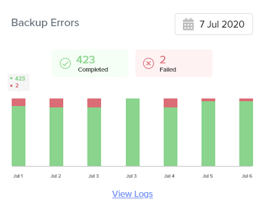 - Back up errors - You can see the list of errors recorded while taking the backup in this section. You can also click view logs to see the logs list