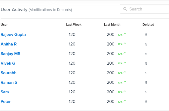 - User Activity - The user activity or modification to the records can be viewed in this section